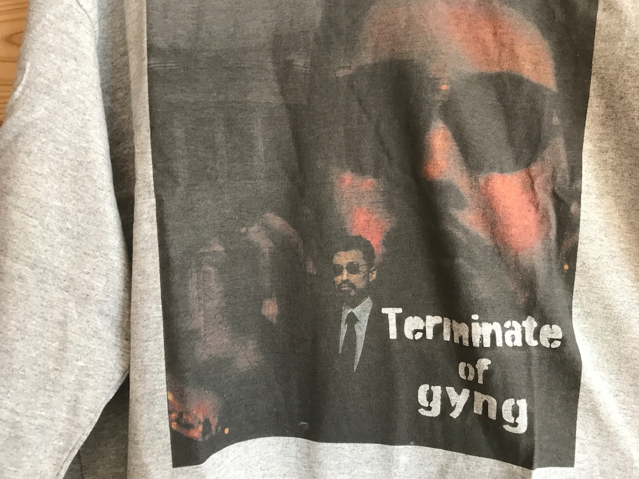 背面襟元プリントは蓄光インクを使用している為暗がりで怪しく光ります。